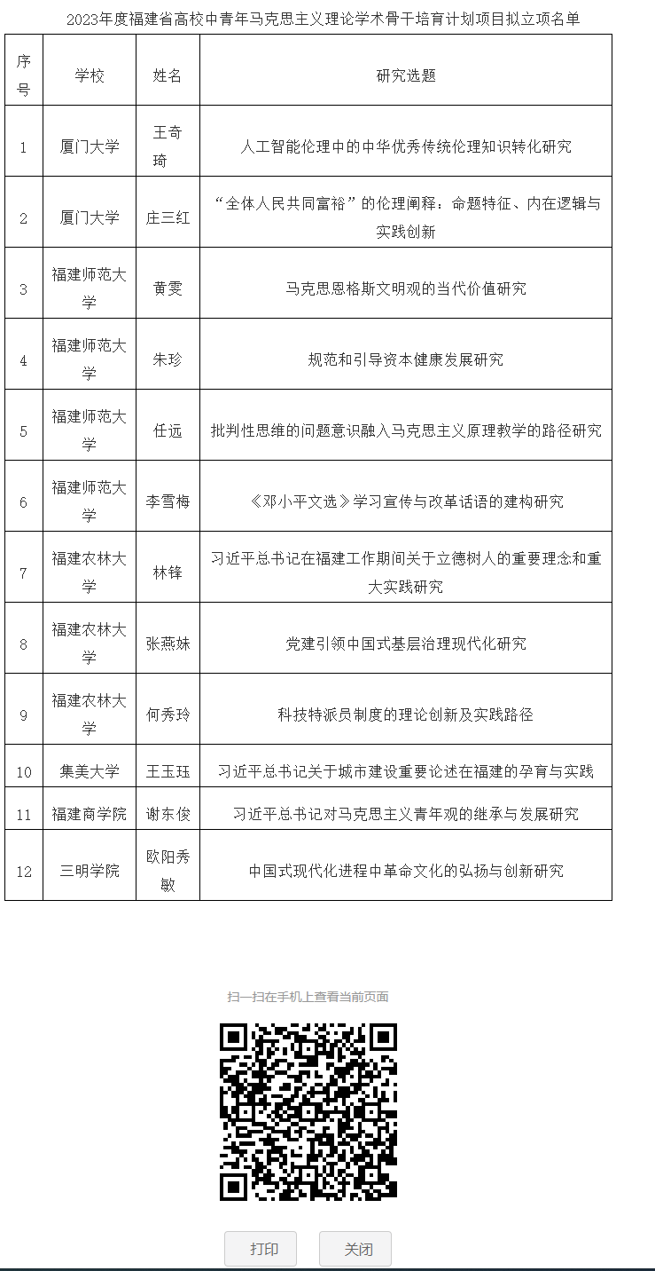 喜讯: 根据《中共福建省委宣传部、中共福建省委教育工委、福建省社会科学界联合会关于实施2023年度福建省高校中青年马克思主义理论学术骨干培育计划项目申报工作的通知》(闽委教思〔2023〕19号)要求,经有关高校推荐、专家评审,拟立项厦门大学王奇琦的“人工智能伦理中的中华优秀传统伦理知识转化研究”等12项高校中青年马克思主义理论学术骨干培育计划项目,MG冰球突破官网谢东俊老师习近平总书记对马克思主义青年观的继承与发展研究获得立项。