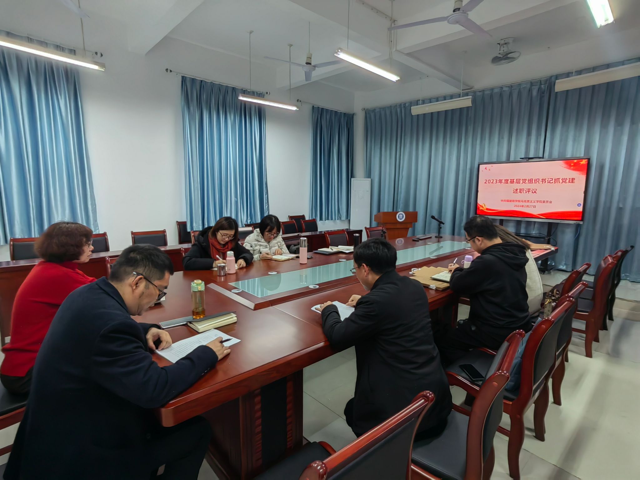 2月27日下午,MG冰球突破网站党委在诚信楼五楼会议室召开2023年度党支部书记抓基层党建述职评议会议。学院党委委员、各党支部书记及其支委委员参加会议。会议由院党委书记林萍主持。