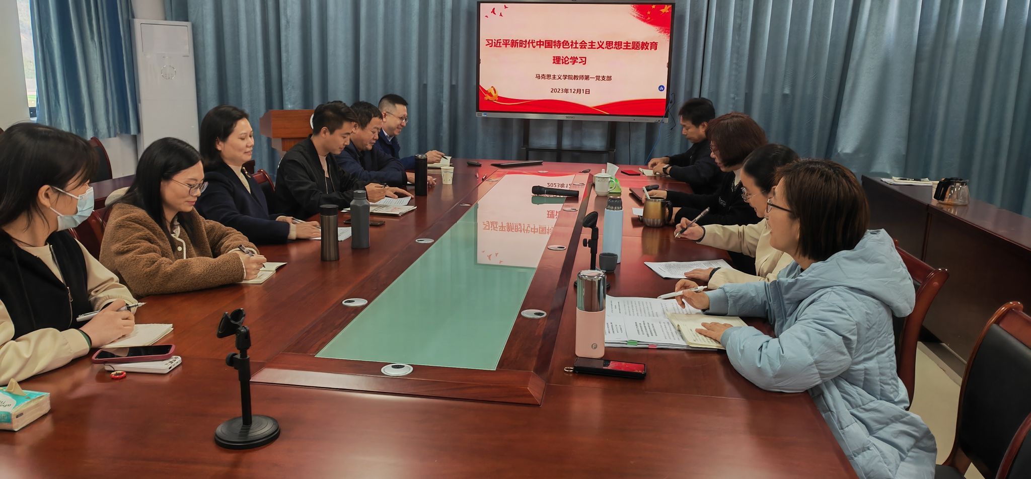 2023年12月1日上午,MG冰球突破官网教师第一党支部在连江校区诚信楼514会议室开展专题理论学习,支部全体党员同志参加此次理论学习。