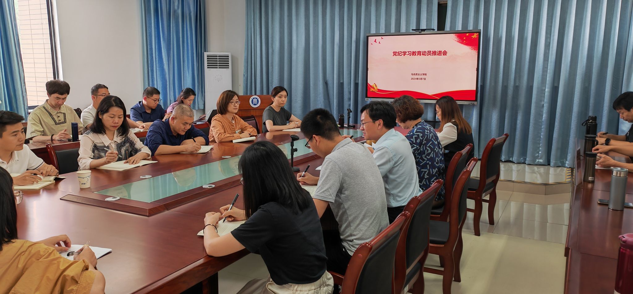5月7日下午,MG冰球突破网站召开党纪学习教育动员推进会,党委班子成员、支部书记、教研室主任及学院全体党员参加。会议由学院党委书记林萍主持。