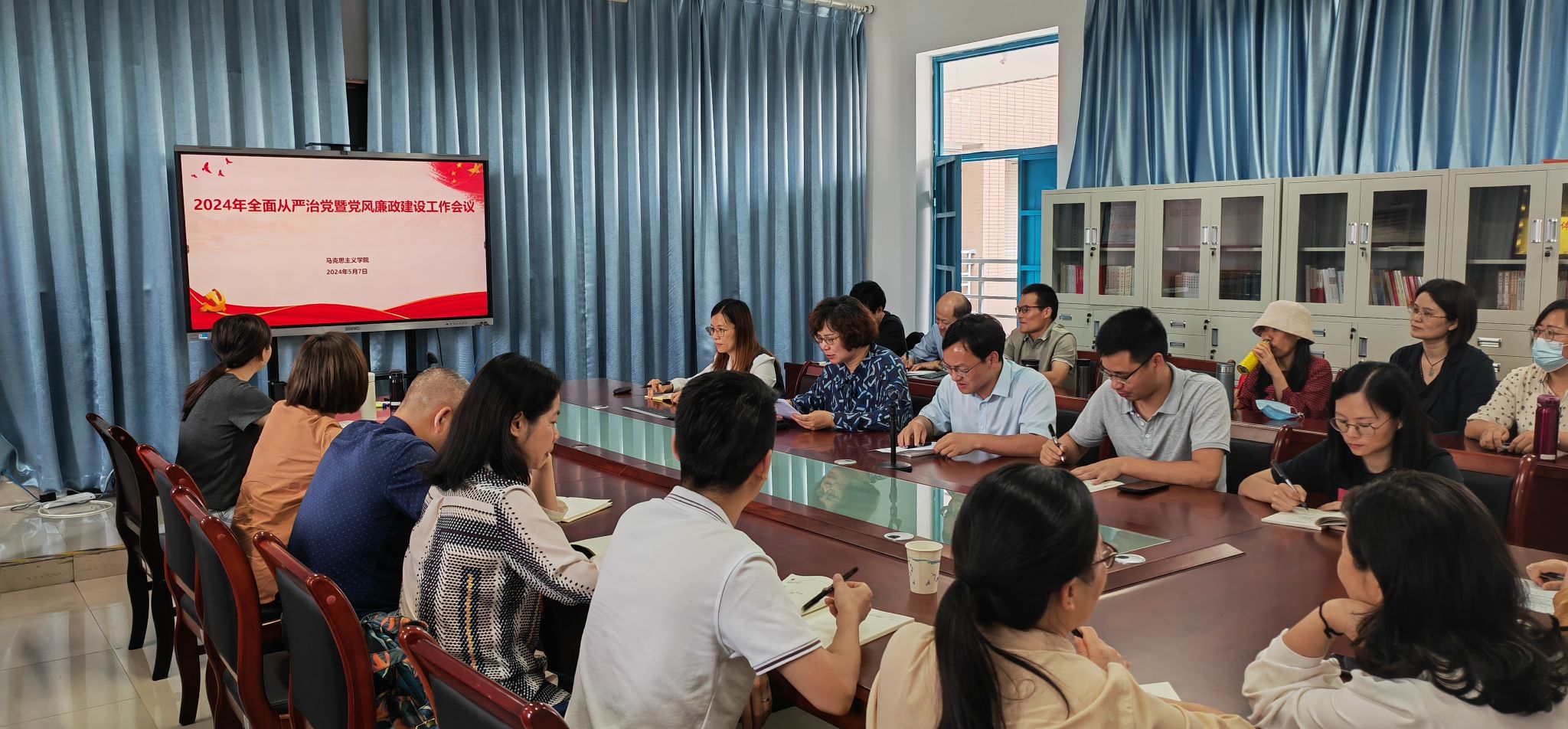 5月7日下午,MG冰球突破网站在诚信楼514会议室召开2024年全面从严治党暨党风廉政建设工作会议,学院全体党员参加,会议由学院党委书记林萍主持。