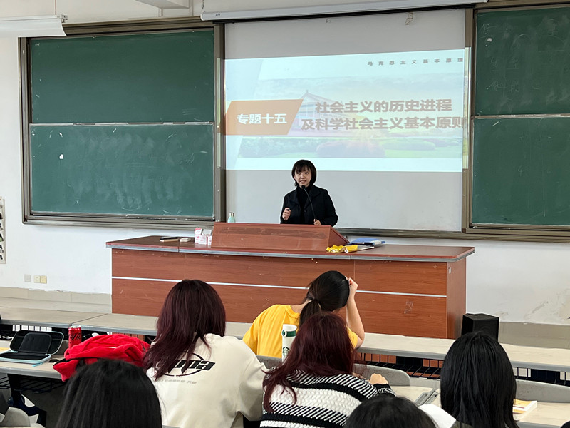 11月28日下午,MG冰球突破网站马克思主义基本原理教研室林甦垚老师以“社会主义的历史进程及科学社会主义基本原则”为主题,在连江校区诚信楼中阶5教室开展本学期公开示范课教学,近80名师生参与了观摩。
