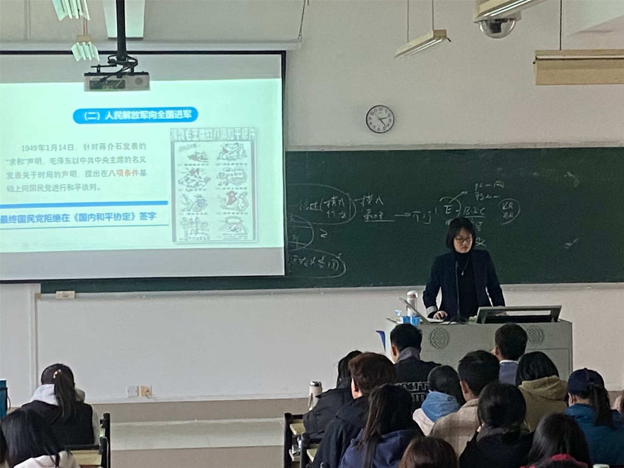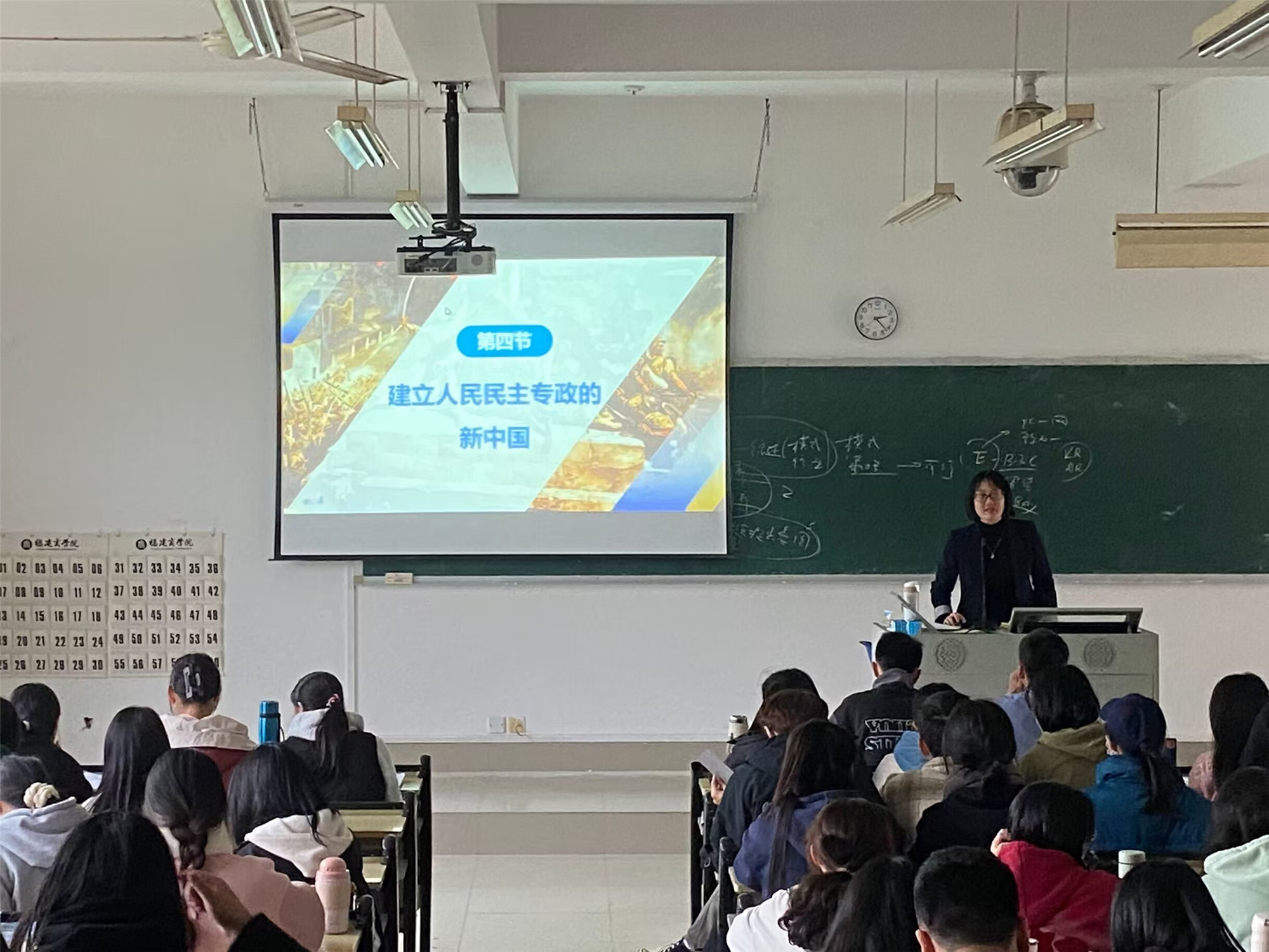 11月24日上午,中国近现代史纲要教研室陈香琴老师于马尾校区笃行T1教室,以《中国近现代史纲要》课程第七章《为建立新中国而奋斗》为授课内容,开展示范型观摩课。教研室老师及其他二级学院老师到场观摩,并作指导。