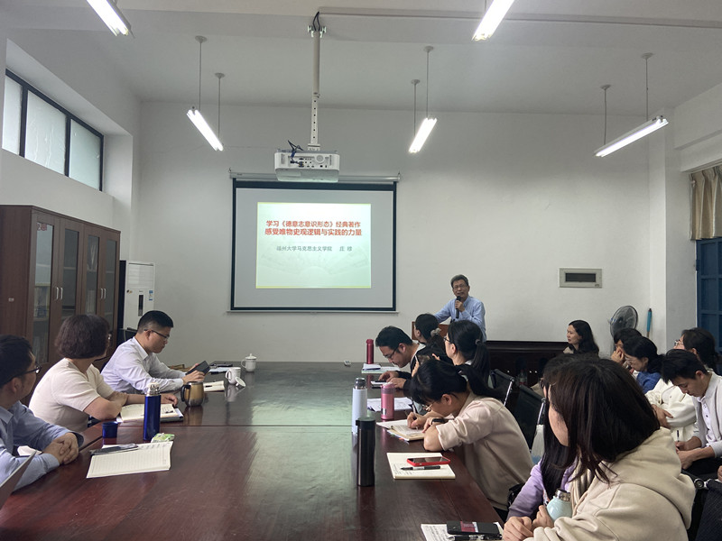 2022年5月24日下午,马克思主义基本原理教研室邀请福建省思想政治理论课教学指导委员会副主任委员、原福州大学MG冰球突破网站院长庄穆教授做了题为“学习《德意志意识形态》经典著作,感受唯物史观逻辑与实践的力量”集体备课专题学习。教务处处长庄惠明参加了本次集体备课会,集体备课会由原理教研室主任黄玮老师主持。
