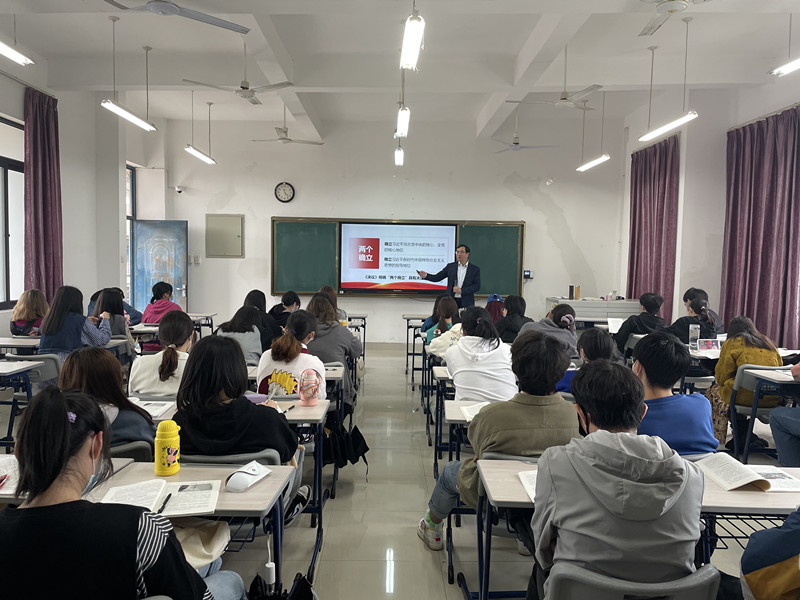 蒲文庆在授课中,首先,采用对比的教学方法,回顾了党在历史上三个历史决议形成的背景、内容和意义,引导学生对历史决议有一个全面的认知与把握,并在此基础上重点强调第三个历史决议的重要价值。紧接着,蒲文庆按照回顾过去、立足现在、总结意义、开创未来的逻辑对第三个历史决议—《中共中央关于党的百年奋斗重大成就和历史经验的决议》进行了系统的宣讲,重点讲解了习近平新时代中国特色社会主义思想的新发展和“两个确立”的决定性意义,引导学生要坚持好、维护好“两个确立”。最后,蒲文庆嘱咐学生作为新时代的亲历者、见证者、建设者,要主动的去学习《决议》原文,领会党的十九届六中全会精神,并将学习成果融入到日常学习、工作和生活,未来更好的建功新时代。