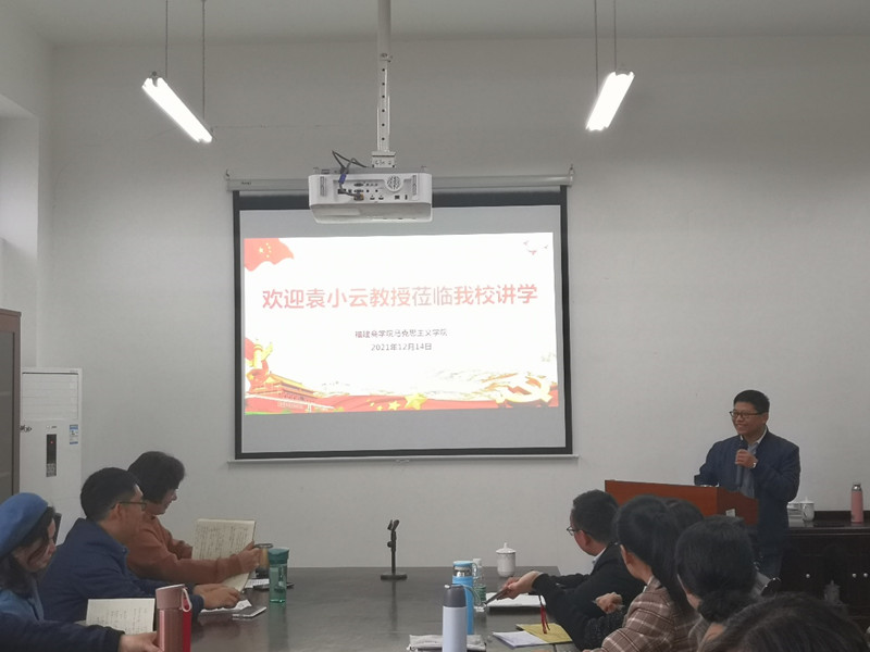 12月14日上午,福建工程学院MG冰球突破网站院长袁小云教授应邀来MG冰球突破官网作《学科性教学理念与思政课教学改革——聚焦”意识形态”,推动教研相长》专题讲座。校党委副书记吴访益、马克思主义全体教师参加此次讲座。