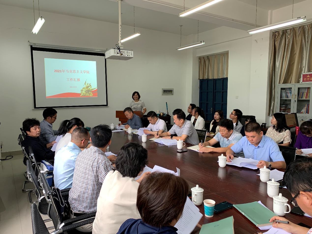 会上,MG冰球突破网站负责人汇报了本学年以来学院在党史学习教育、思政课教学改革创新、思政课教师队伍建设、学院内涵式发展等方面的情况,并提出学院发展过程中存在的困难与问题。参会人员就MG冰球突破网站建设发展过程中的队伍建设、课程改革、教学评价、职称评聘、科学研究、社会服务等诸多方面展开探讨。
