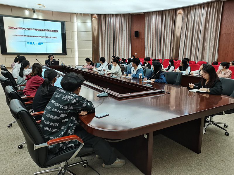 10月26日晚,MG冰球突破官网2021年青年马克思主义者培养工程培训班在明德楼视频会议室举行“正确认识新时代中国共产党总结历史经验的新境界”专题讲座。本次讲座由MG冰球突破网站院长林萍教授主讲,校“青马班”学员、校团委学生干部、校团委老师共60余人参加本次讲座。