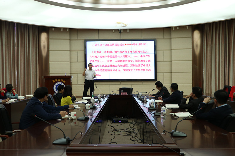 徐晓丹指出,习近平总书记“七一”重要讲话是一篇马克思主义纲领性文件,是新时代中国共产党不忘初心、牢记使命的政治宣言,是中国共产党带领人民以史为鉴、开创未来的行动指南,要认真学习贯彻习近平总书记“七一”重要讲话精神,结合贺东航教授的辅导报告,带头示范学、系统深入学,努力推动党史学习教育和学校事业发展迈向新台阶。