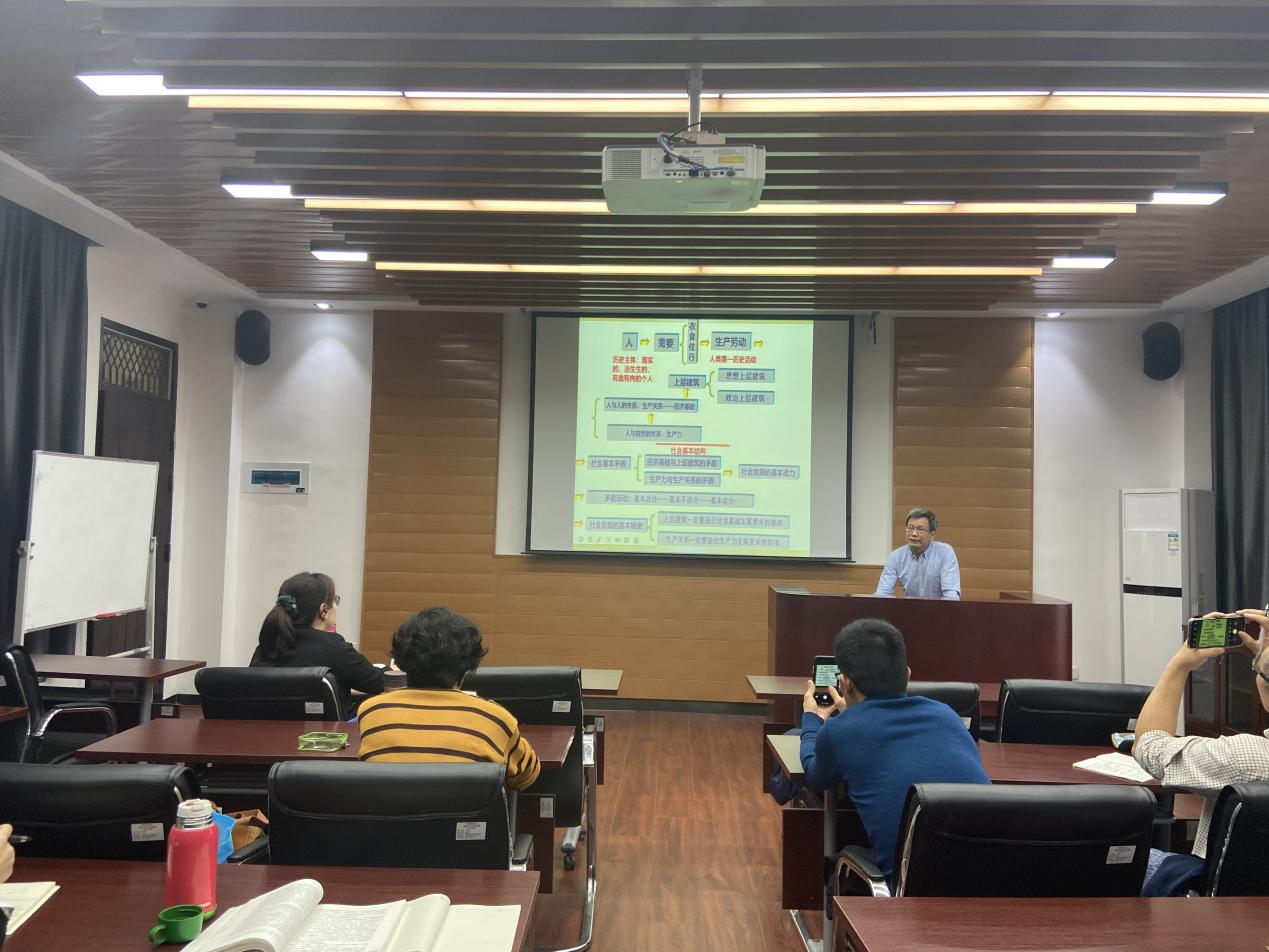 10月29日下午,福建省思想政治理论课教学指导委员会副主任委员、原福州大学MG冰球突破网站院长庄穆教授应邀到MG冰球突破官网作题为《整体把握马克思主义社会历史观的理论与逻辑》的示范教学。MG冰球突破官网MG冰球突破网站相关教师参加学习。