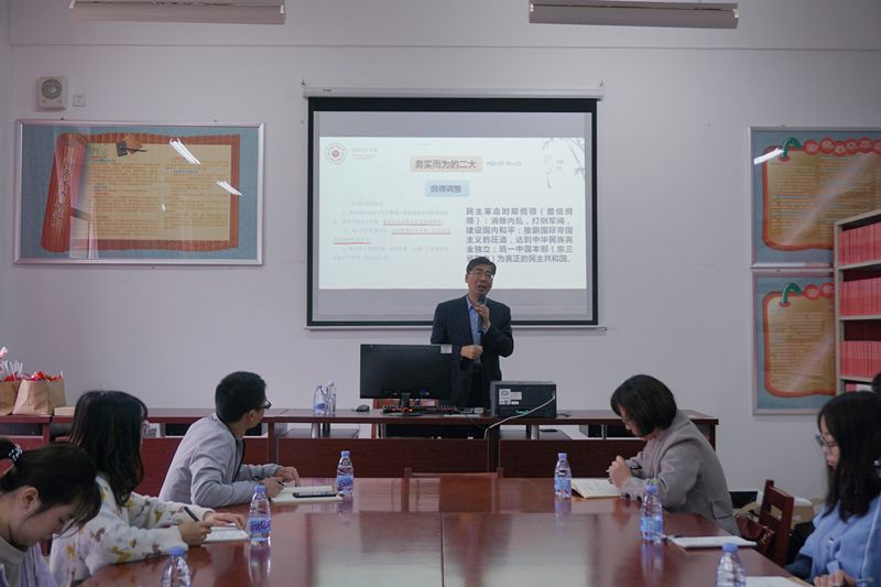 为认真学习贯彻落实习近平总书记在党史学习教育动员大会上的重要讲话精神,推动学校师生深入学好党史、新中国史、改革开放史、社会主义发展史,3月13日上午,闽南师范大学MG冰球突破网站院长陈再生教授应邀莅临MG冰球突破官网开展题为“跟随大会学党史”的专题讲座。MG冰球突破网站部分教师以及校习近平新时代中国特色社会主义思想读书社社员聆听了讲座。