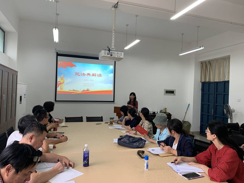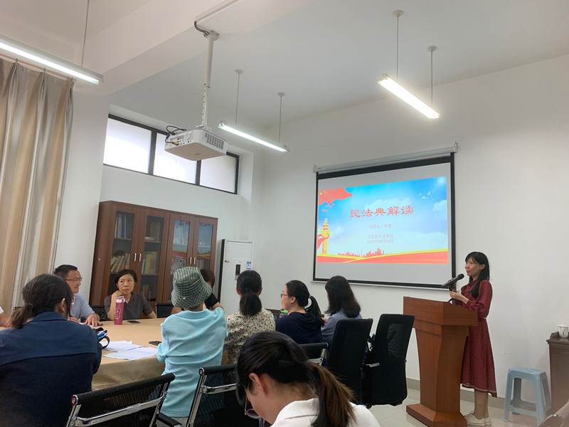 2020年10月13日下午,MG冰球突破网站直属党支部在院部会议室召开了《中华人民共和国民法典》的学习活动,马院副教授李莹老师做了题为《民法典解读》的主题讲座。讲座由林萍书记支持,马院全体党员教师聆听了这场讲座。