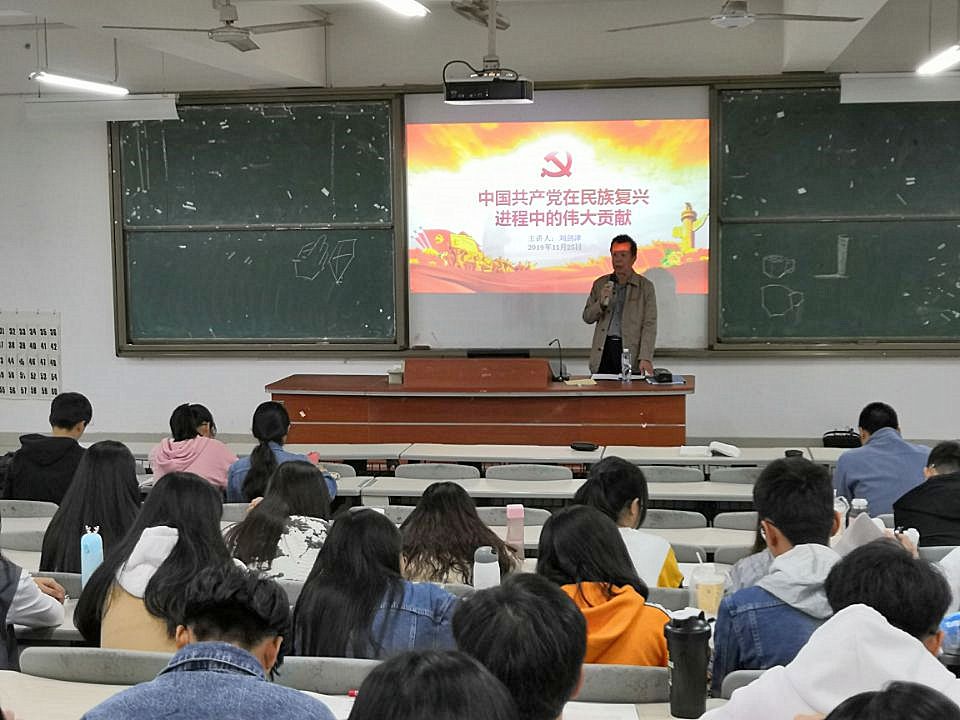 刘剑津从以毛泽东同志为核心的党的第一代中央领导集体带领中国人民“站起来”、以邓小平同志为核心的第二代中央领导集体带领人民“富起来”、以习近平同志为核心的党中央领导集体带领中国人民行进在“强起来”的伟大征程上这3个方面,回顾了党领导人民推动实现民族复兴的伟大斗争。在讲授中,刘剑津运用翔实的数据和历史事件,从历史视野、理论视野、对比视野对中国共产党推动民族复兴的历史进程作了深刻阐释,从历史演进的横断面剖析中国共产党在实现中华民族伟大复兴进程中的巨大贡献,勉励青年学生要努力学习,担当起建设社会主义现代化强国的重任。