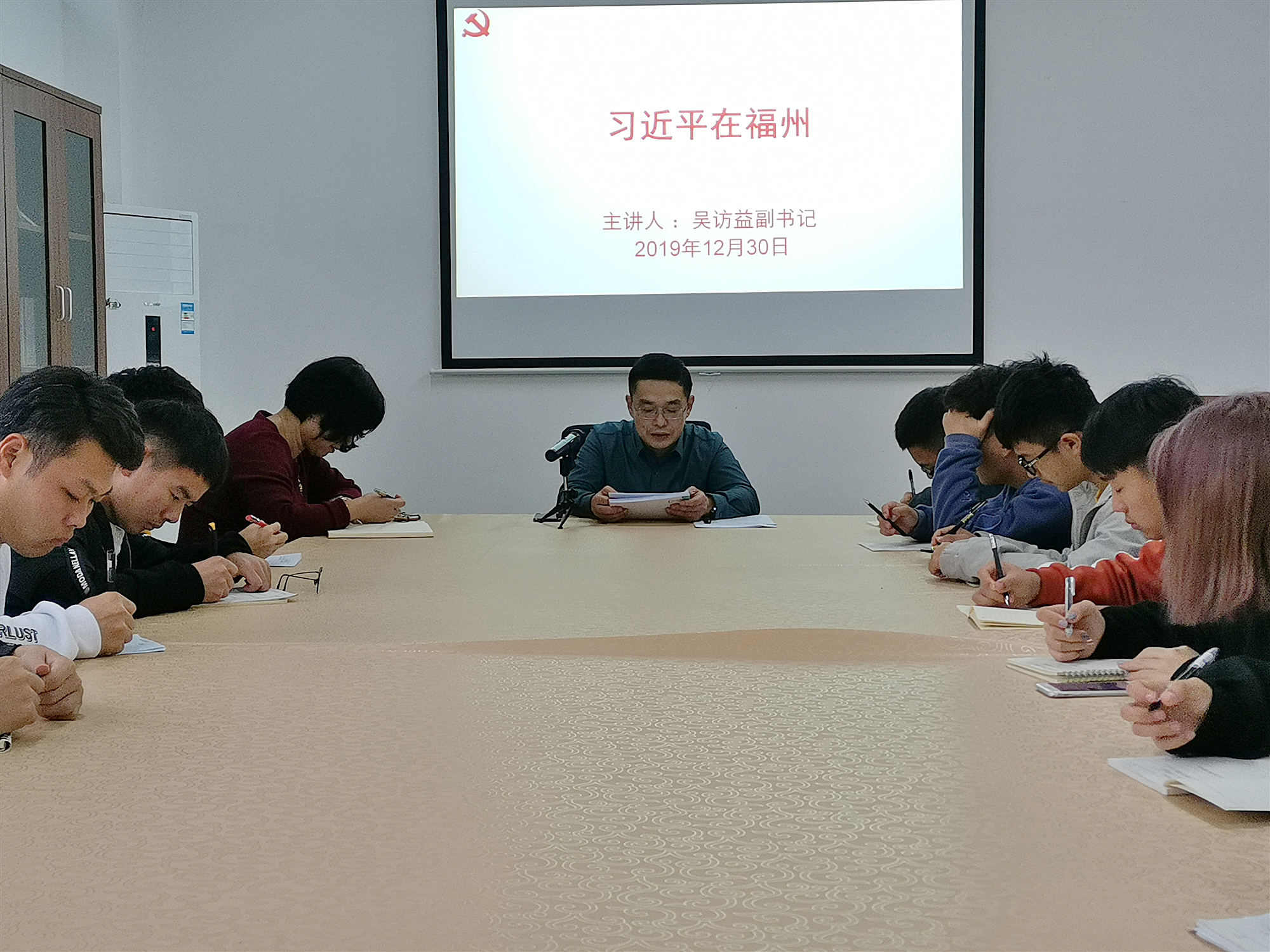 12月30日下午,校党委副书记吴访益在MG冰球突破网站会议室,给校习近平新时代中国特色社会主义思想读书社学生讲授了一堂思政课。MG冰球突破网站部分老师和读书社成员参加学习。