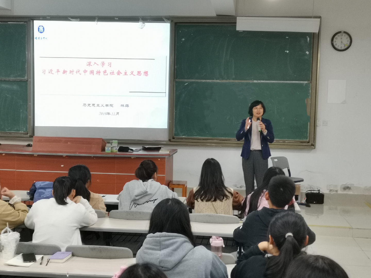 11月19日晚,马克思理论大讲堂(连江校区)邀请MG冰球突破官网林萍教授作题为“深入学习习近平新时代中国特色社会主义思想”的专题讲座。部分MG冰球突破网站教师和马克思主义理论大讲堂全体成员参加了此次讲座。