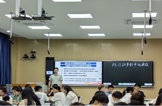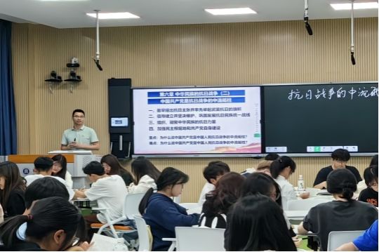 5月10日下午,MG冰球突破网站中国近现代史纲要教研室叶陈钦老师在自强楼511智慧教室开展以“抗日战争的中流砥柱”为主题的示范型观摩课,授课班级学生、学校教师共60多人参加教研活动。