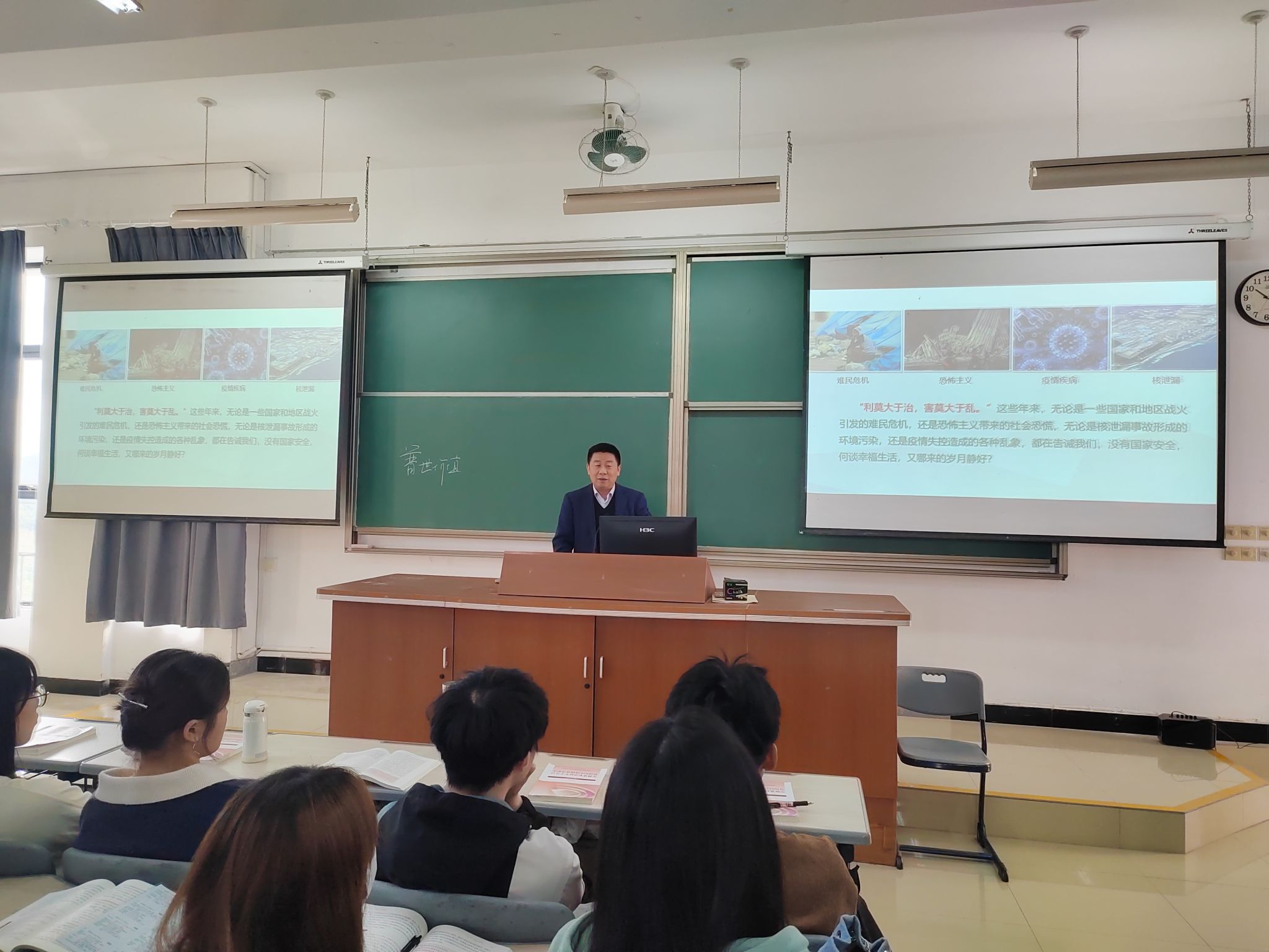 12月11日上午, 副校长杨晓翔教授为信息工程学院2022级数据科学与大数据技术专业的学生讲授了一堂“世界变乱交结  中国笃行担当”为主题的思想政治理论课。