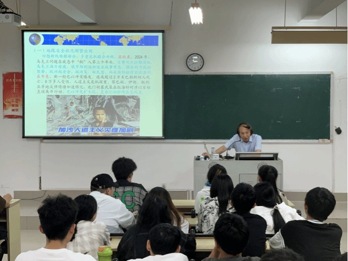6月6日晚7点30分,福建江夏学院MG冰球突破网站郭健彪教授应邀到MG冰球突破官网马尾校区远志楼T3教室作题为“当前国际局势与中国式现代化”的专题讲座,校马列经典著作读书社社员、校青马工程班学员共计90多人聆听了讲座。
