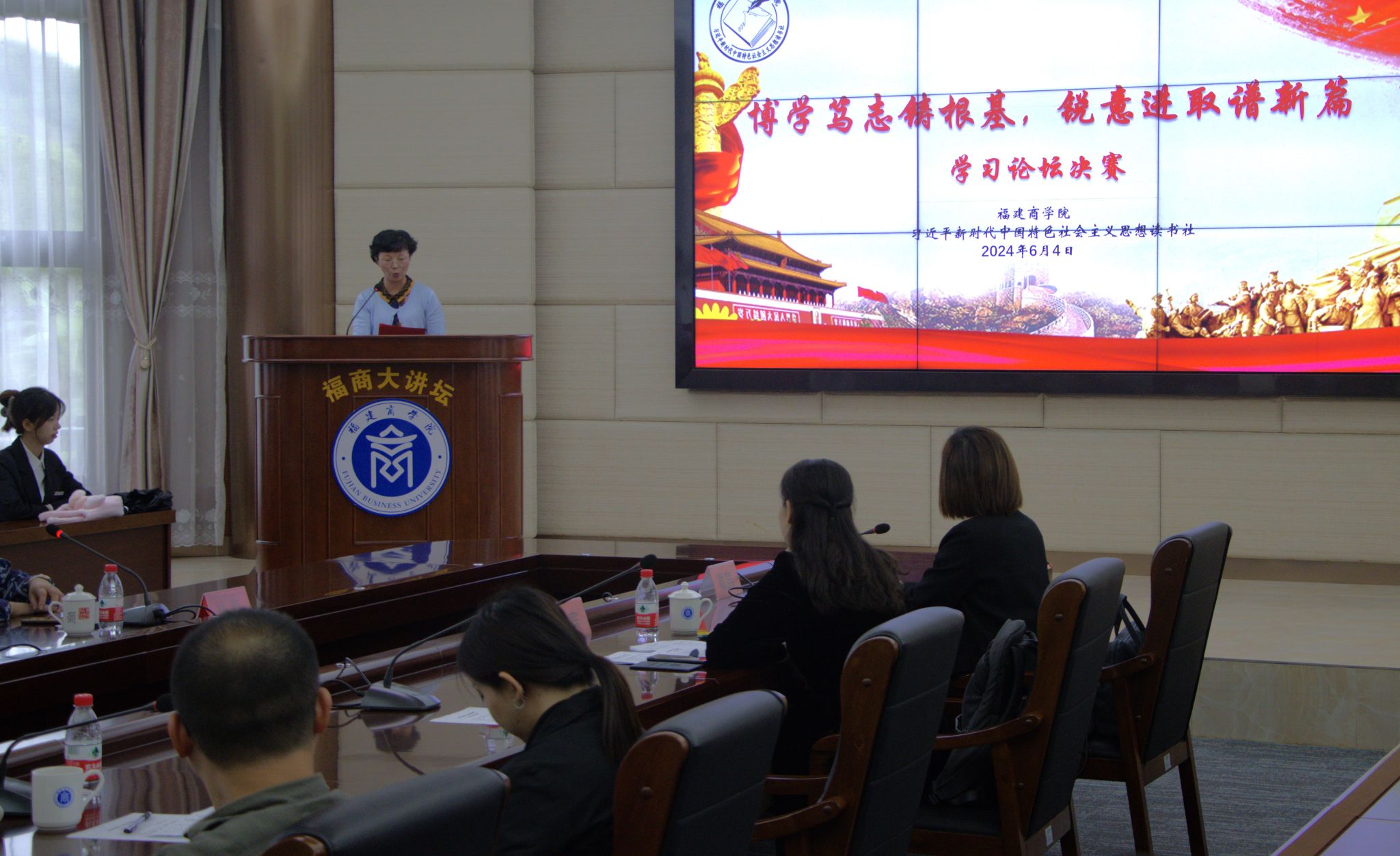 2024年6月4日,MG冰球突破网站习近平新时代中国特色社会主义思想读书社与马列经典著作读书社,在连江校区明德楼视频会议室联合举办了主题为“博学笃志著根基 锐意进取谱新篇”的学习论坛决赛。学校林文艺副校长、MG冰球突破网站负责人和读书社指导老师、MG冰球突破网站部分教师及读书社社员等近百名师生参加此次活动。