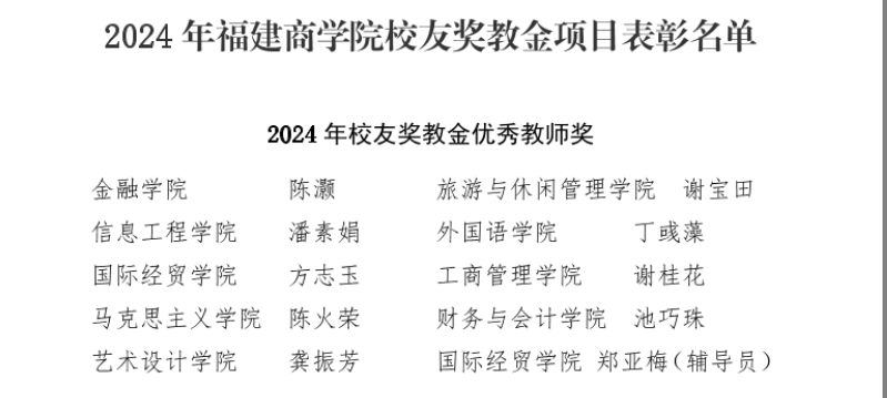 9月19日下午,MG冰球突破官网在连江校区学生活动中心召开庆祝第40个教师节暨表彰大会。MG冰球突破官网陈火荣老师获得2024年校友奖教金优秀教师荣誉表彰,陈翠老师作为2024年福建省第七届高校青年教师教学竞赛一等奖获得者获得表彰。
