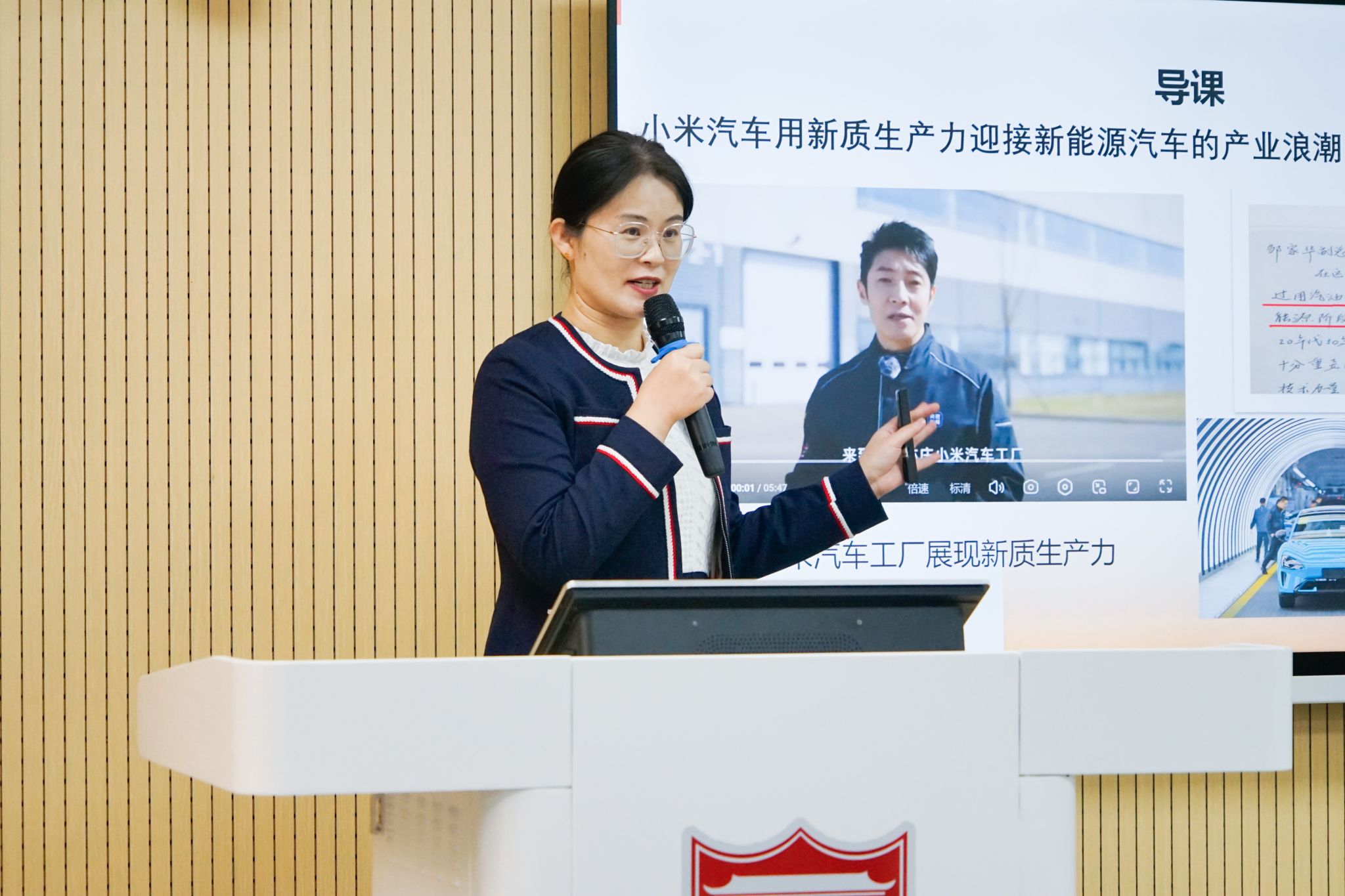 会议伊始,福建师范大学MG冰球突破网站任远老师和MG冰球突破官网李雪飞老师围绕《马克思主义基本原理》课的核心知识点——“唯物辩证法的总特征”,依次进行了教学展示。其中,李雪飞老师以《从认识新质生产力出发感悟唯物辩证法发展观之魅力》为题,巧妙选取新质生产力引领新能源汽车为案例,围绕唯物辩证法发展观的实质、原因,状态以及趋势展开讲解,为在座师生带来了一堂生动的思政示范课。