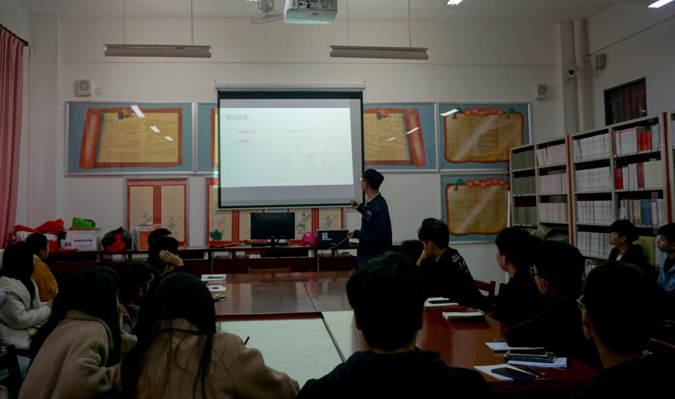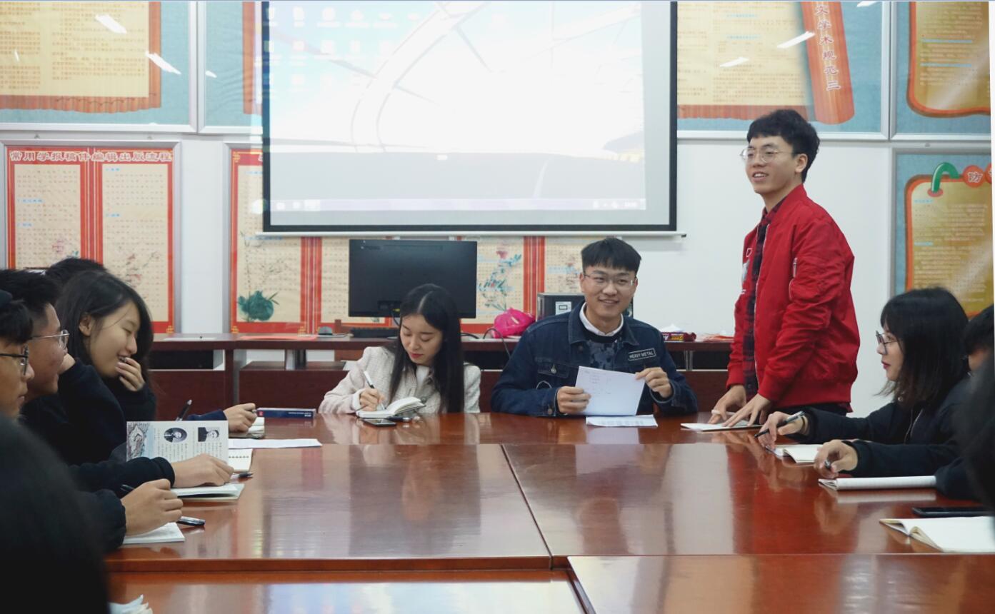 1月11日下午,MG冰球突破网站习近平新时代中国特色社会主义思想读书社于连江校区自强楼活动室开展了本学期第八场大学生小分队宣讲活动暨读书社2018-2019学年第一学期期末工作总结会。本次宣讲由读书社社长金顺源为我社全体干部干事近40名同学进行宣讲。