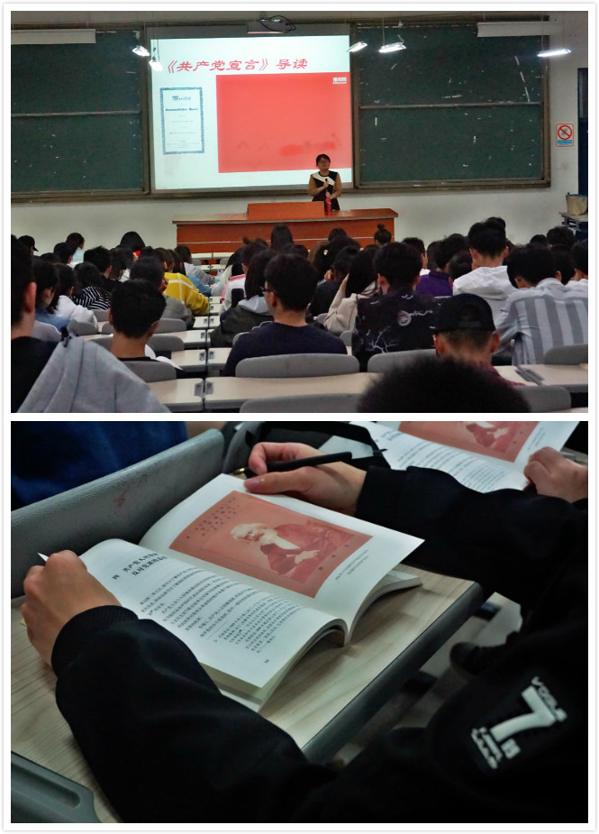 历史车轮滚滚向前,时代潮流浩浩荡荡。2018年是马克思诞辰200周年,是《共产党宣言》发表170周年。振叶寻根、观澜索源,为帮助MG冰球突破官网马克思主义理论读书社社员们更好不忘初心品经典,坚定信念向前进。2018年3月29日晚,我社邀请了MG冰球突破网站黄玮老师于连江校区诚信楼大阶一为读书社一班社员作了“《共产党宣言》导读”的专题讲座。