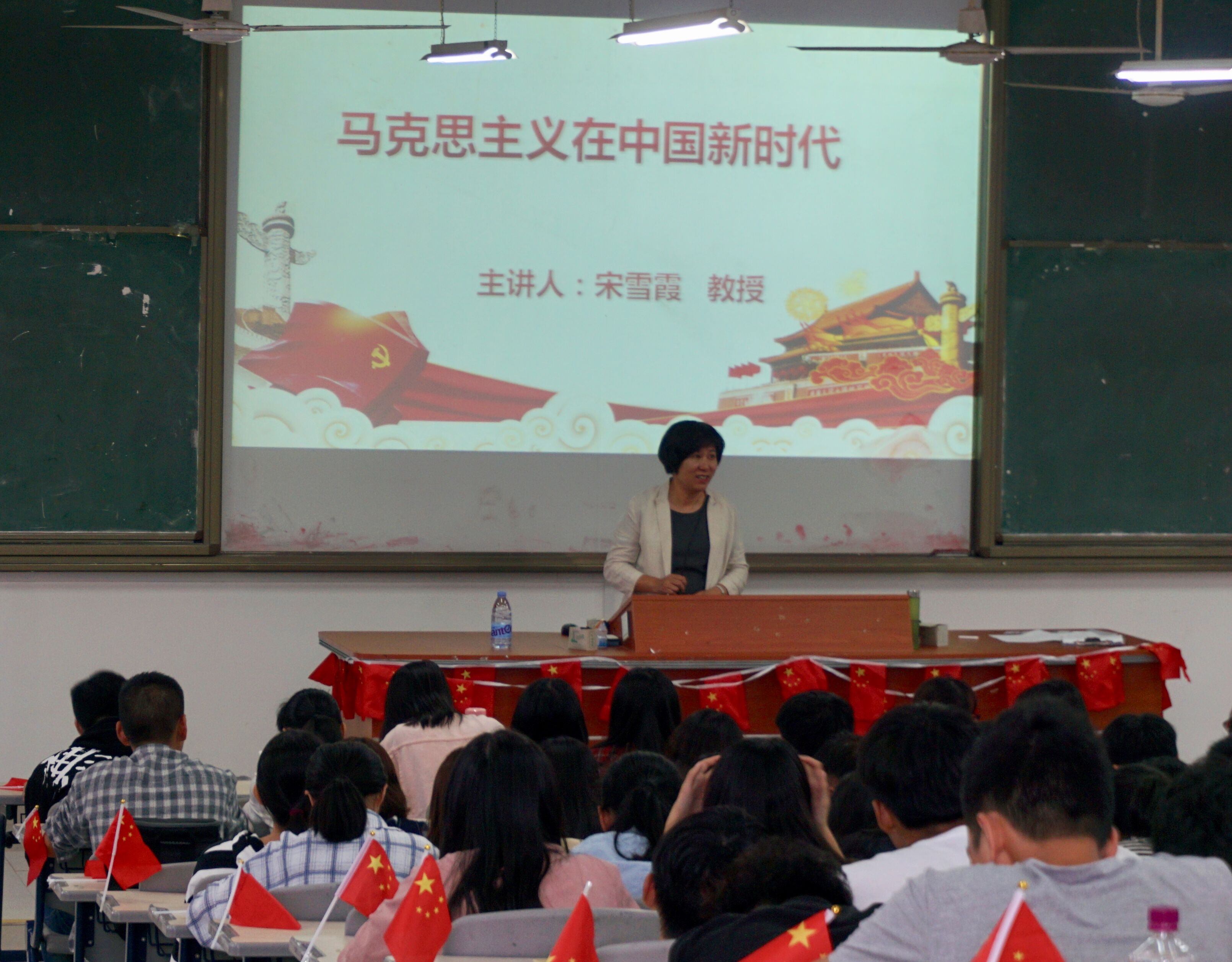 开班仪式结束后,福建工程学院MG冰球突破网站宋雪霞教授为在场师生作了题为《马克思主义在中国新时代》的首场专题讲座。宋教授系统全面的介绍了马克思的平生、马克思信仰形成的四个阶段、继而引导同学们思考“到底什么是马克思主义?”她用拆分法告诉大家:“马克思主义中的‘马克思’为其创始人,‘主义’是核心的价值追求,把马克思所倡导的造福人民,为绝大多数人谋福利作为核心价值追求,就是马克思主义”。此外,宋教授深入浅出的剖析了当代中国的伟大社会变革,不是简单延续我国历史文化的母版,不是简单套用马克思主义经典作家设想的模板,不是其他国家社会主义实践的再版,也不是国外现代化发展的翻版。