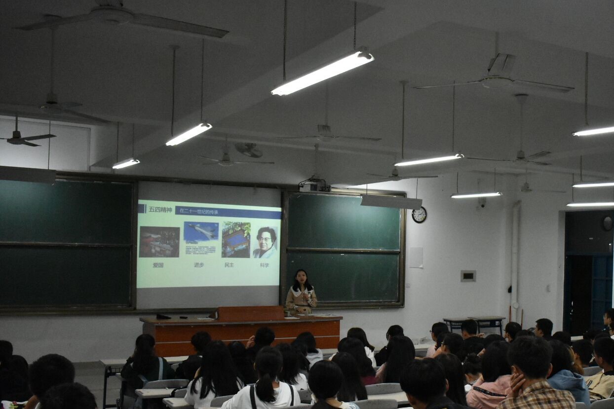 秉承时代精神,彰显青春风采。 11月5日晚,MG冰球突破网站习近平新时代中国特色社会主义思想读书社大学生宣讲小分队于连江校区诚信楼中介五举行本学期第五场宣讲会。本次活动由读书社骨干成员孟雨、陈安琪两位同学主讲,以“进社团”的形式,向MG冰球突破官网校团委、校学生会和校社联学生干部近100名同学进行了宣讲。