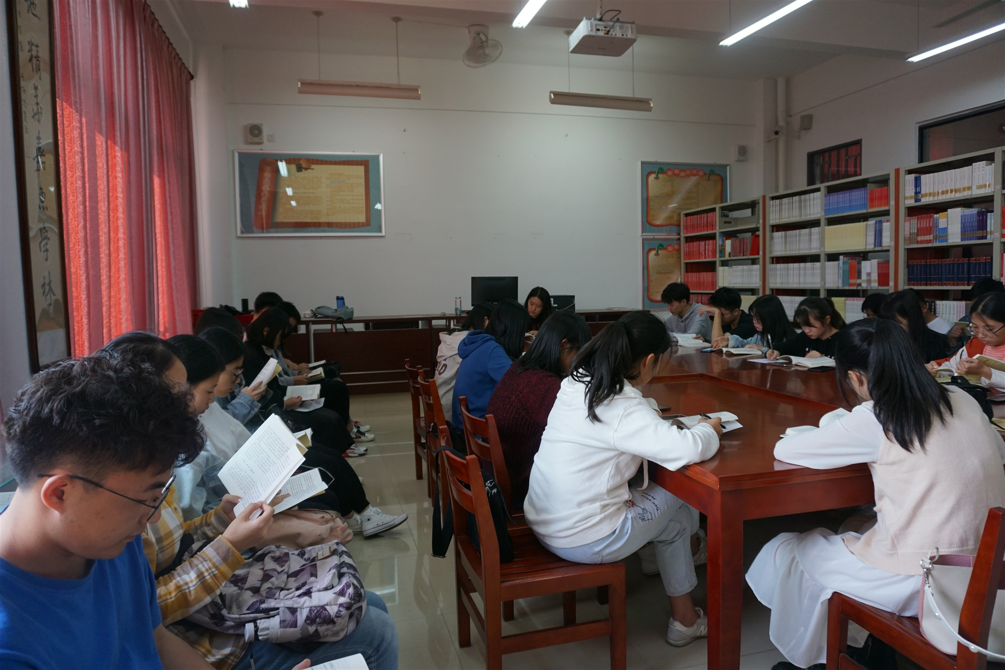 为进一步深入学习贯彻习近平新时代中国特色社会主义思想,推进习近平新时代中国特色社会主义思想进入学生头脑、融入学生思想、嵌入学生心灵。2019年11月5日下午,习近平新时代中国特色社会主义思想读书社在连江校区自强楼活动室开展学习《习近平新时代中国特色社会主义思想学习纲要》(下称《学习纲要》)读书沙龙活动。读书社第一组社员和部分干事参加此次学习活动。